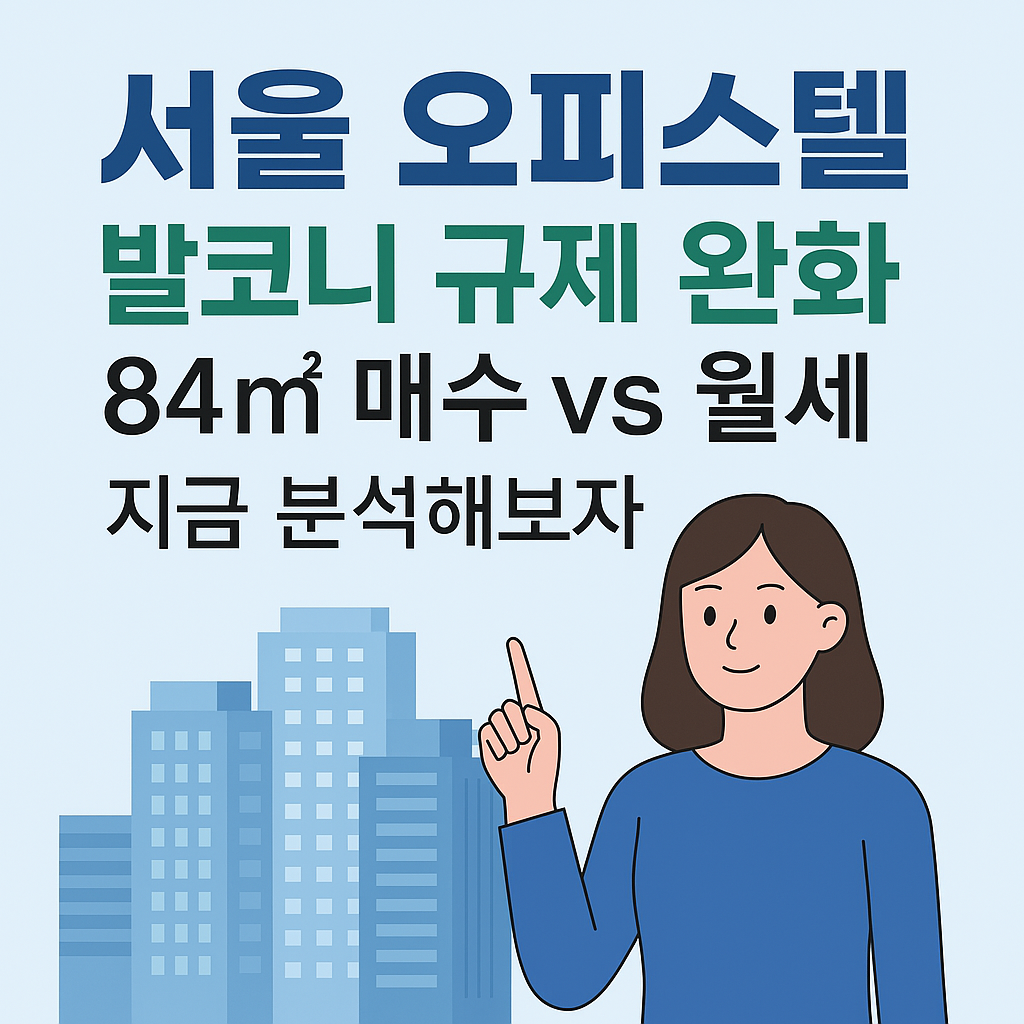 #서울오피스텔 #오피스텔발코니규제완화 #84㎡오피스텔 #오피스텔매수vs월세 #오피스텔금리비교 #장기보유전략 #서울부동산전망 #2025오피스텔정책