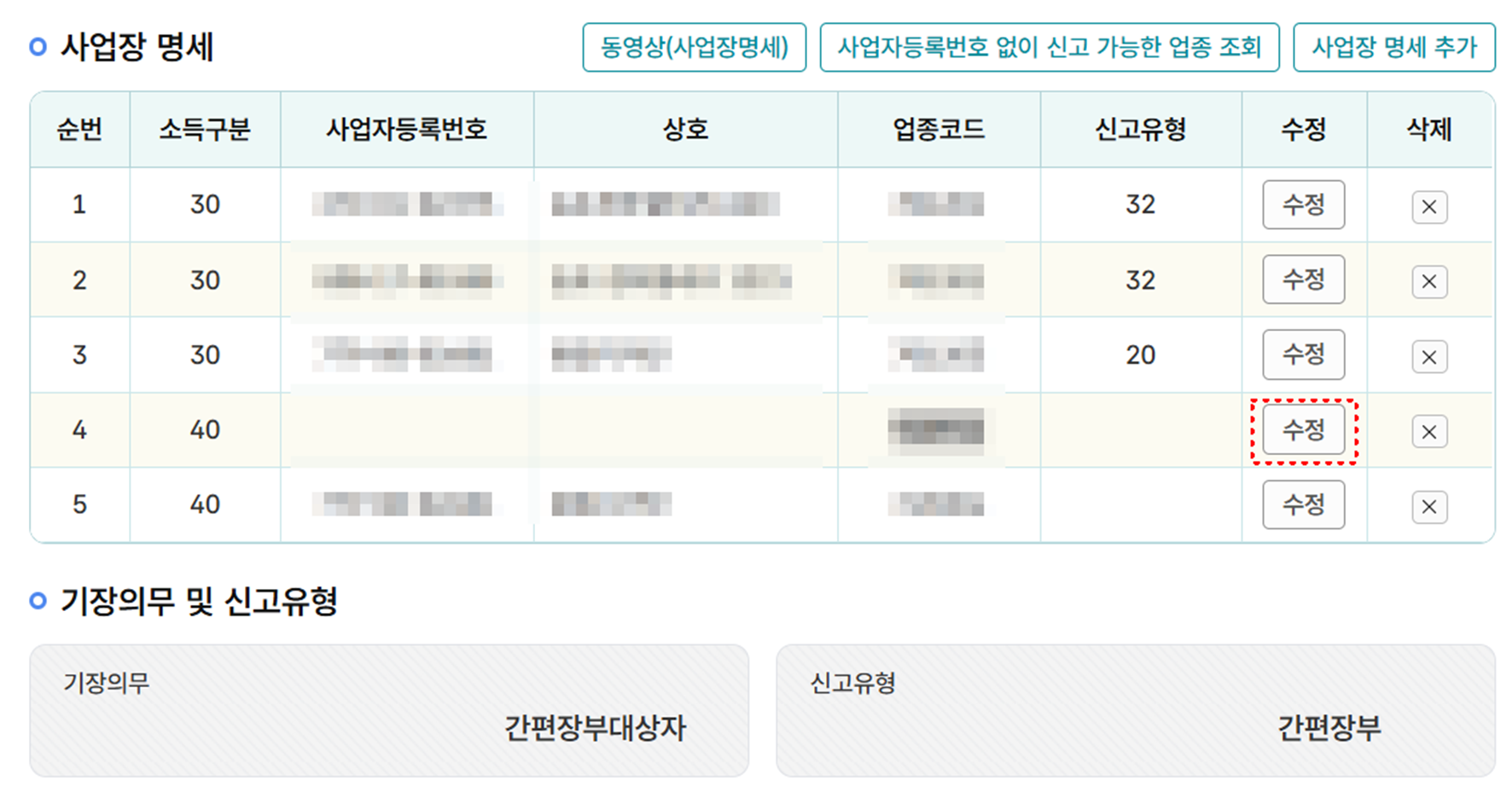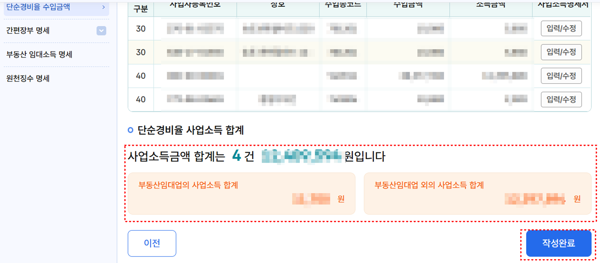 5단계: 사업소득 명세서 입력