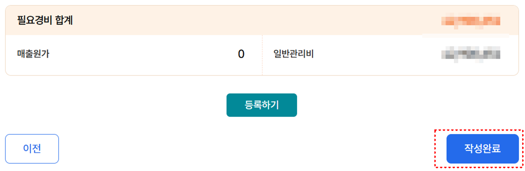 📌 대부분 자동 계산되므로 수치만 확인하고 ‘작성완료’