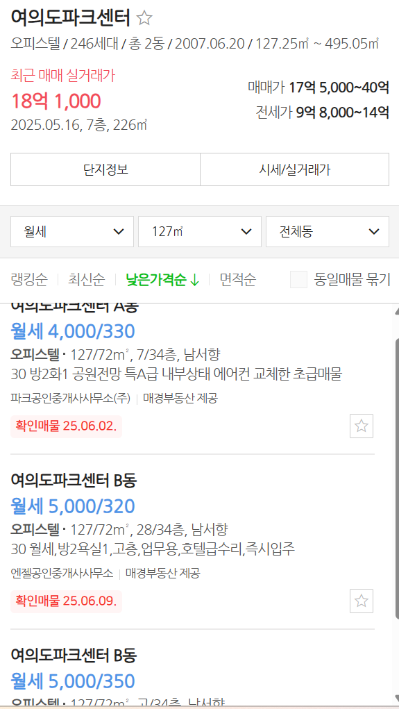지금까지 여의도 주요 아파텔들의 특징과 시세를 정리해보았습니다. 각 단지마다 준공 연도, 커뮤니티 구성, 주차 여건, 한강 조망 여부 등에서 뚜렷한 차이를 보이며, 이에 따라 전·월세 및 매매 시세도 다르게 형성되고 있습니다.