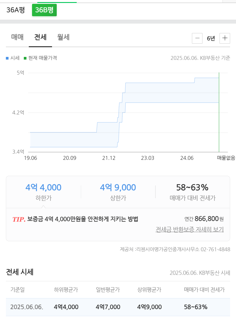 나온 매물이 없어 실거래가로 대체