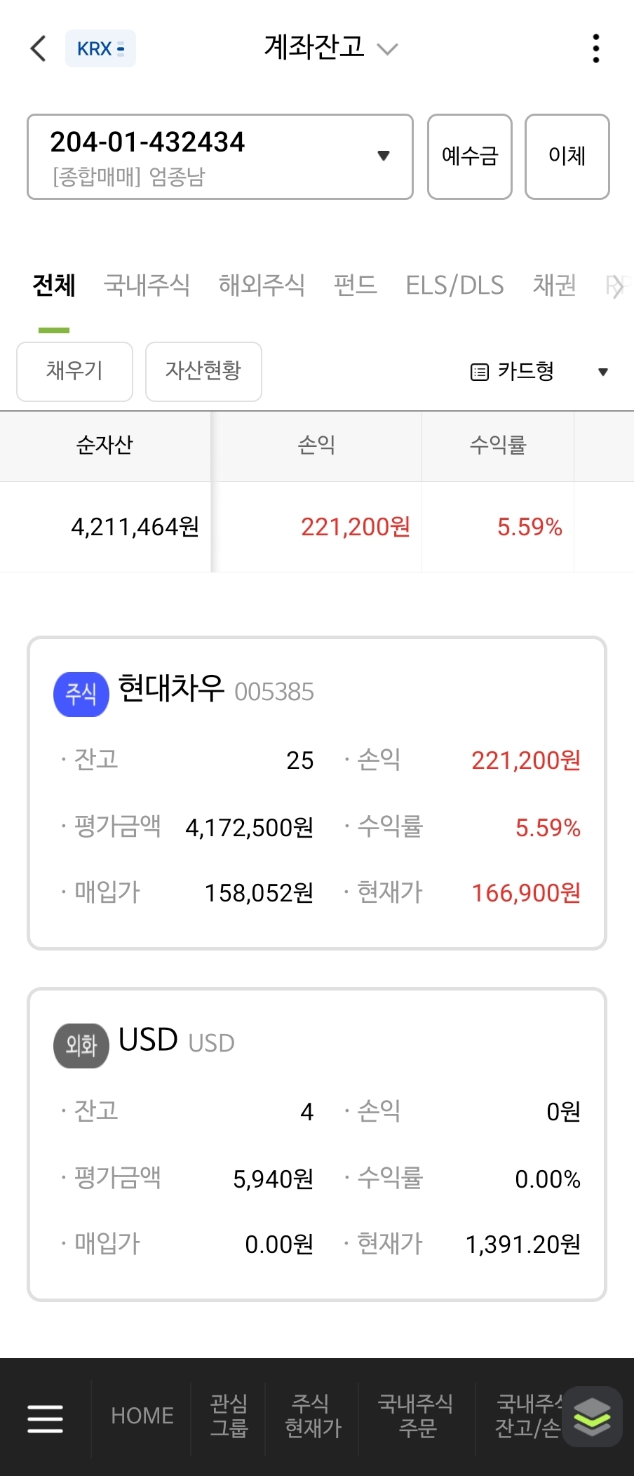 계좌 내 USD(달러) 잔고는 증권사 해외주식 이벤트로 받은 금액입니다.